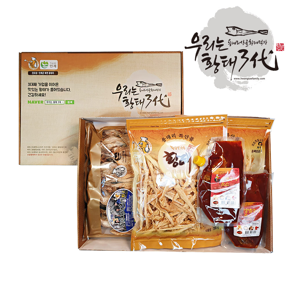용대리 황태 선물세트 종합 1호 구성 : 황태포 10 미 특대+황태채 200g(두 개)+황태양념구이소스 500g(두 개)